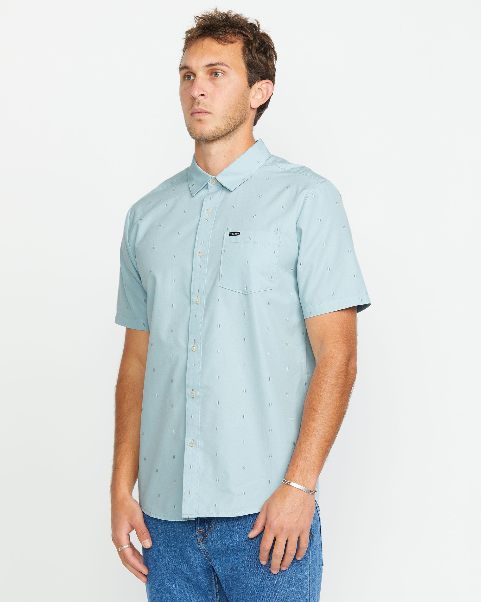 Minimal is not mild. The Bankstone SS keeps it sharp with a textured dobby feel in a classic fit. finished in deep navy. A left chest pocket handles the essentials. while custom logo buttons and a woven label keep it Volcom to the core. Everyday-ready. built for good times.
