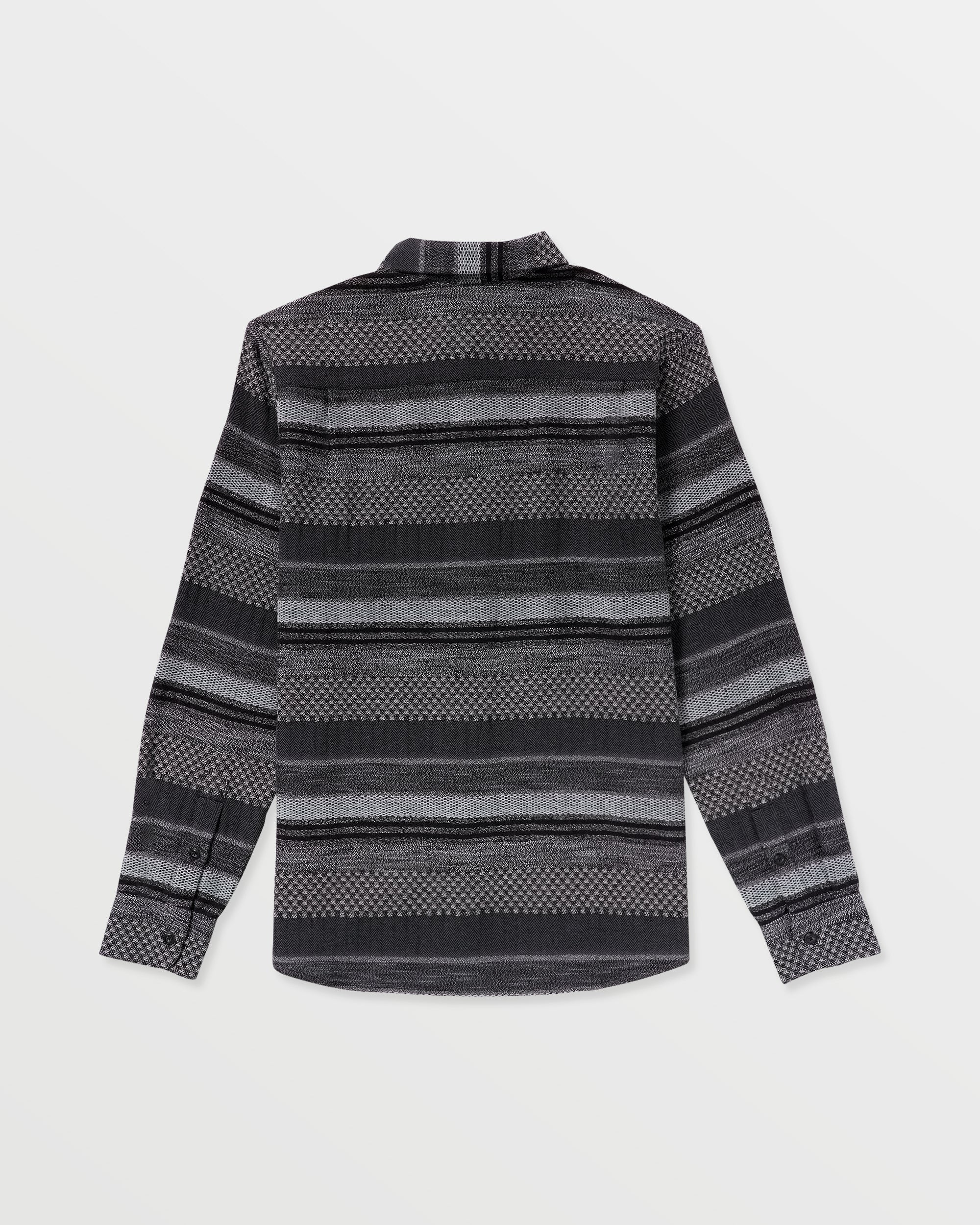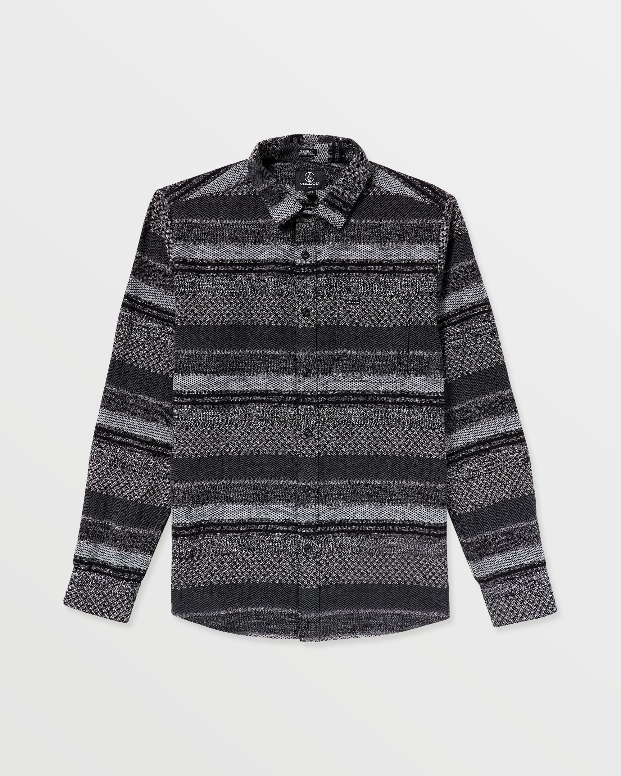 Midnight black with a woven pulse. the Confuzzled LS hits different. Yarn-dyed jacquard adds real texture. not a print. The classic fit keeps it easy. while the left chest pocket stashes the small stuff. Finished with Stone embroidery and custom logo buttons for a quiet flex that goes from curb to last call.