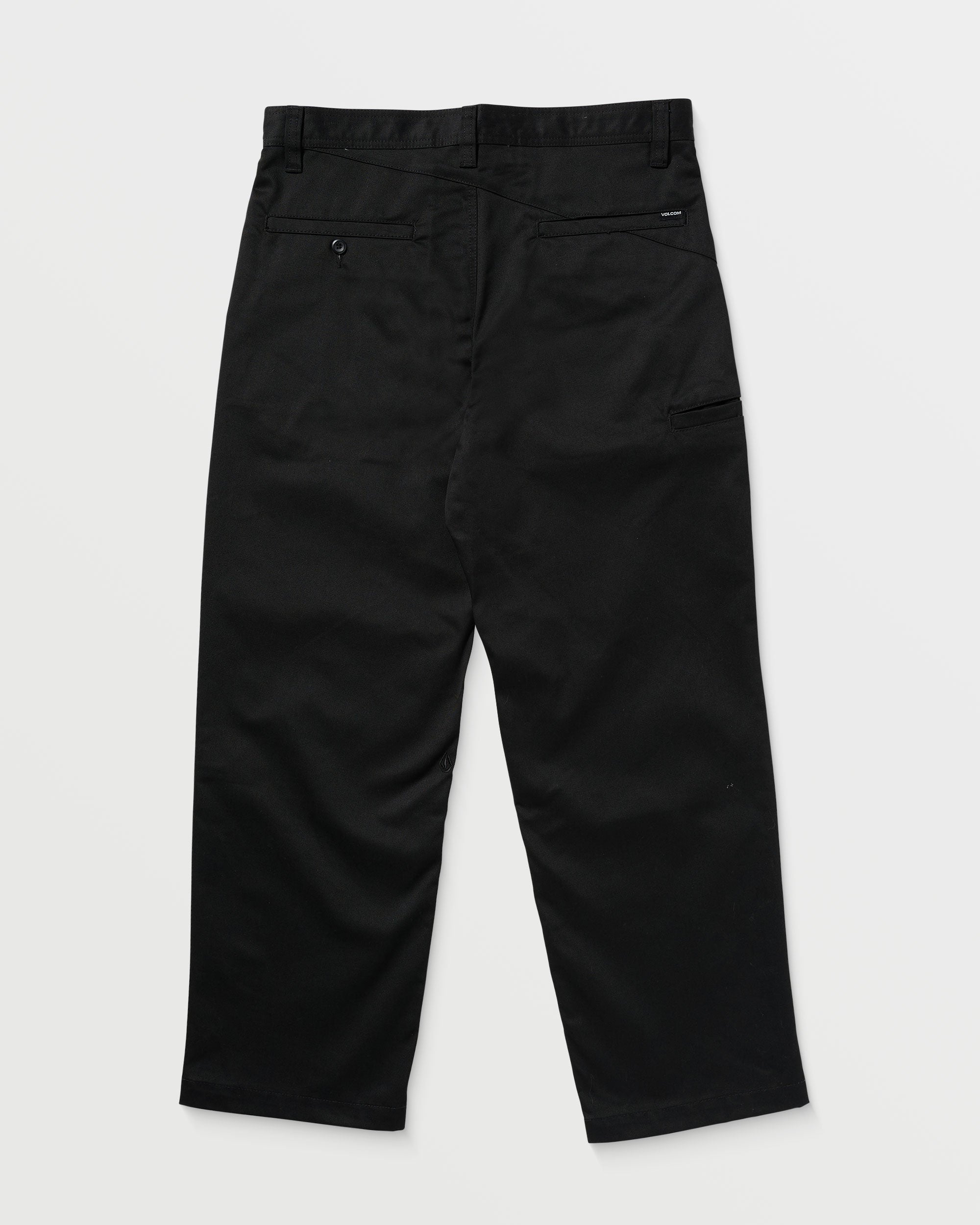 Twill ease meets cool asymmetry in these tapered Volcom chinos. A relaxed. lived-in cotton-poly blend with angled back flashes and welt pockets for chill style.