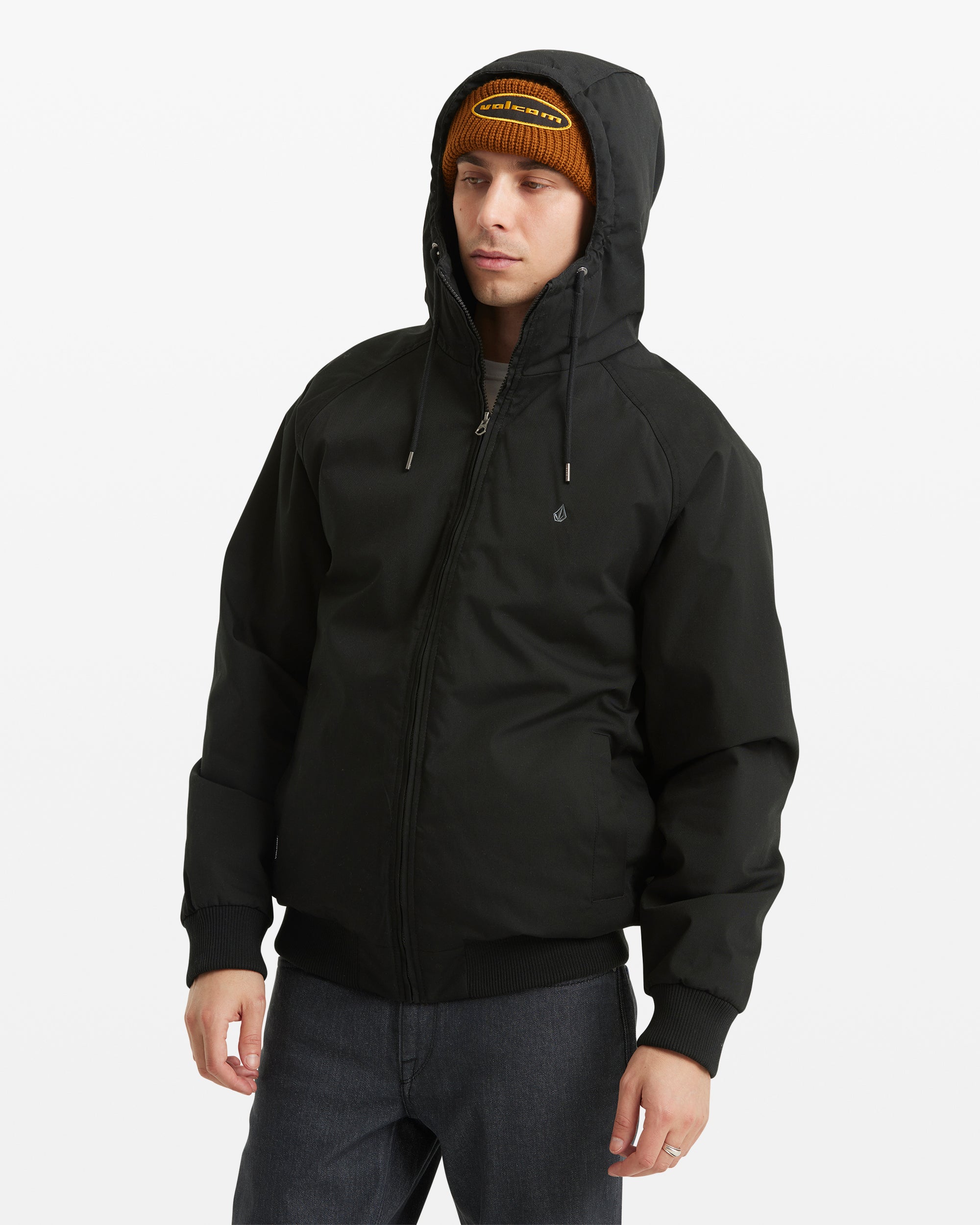 Rain on the forecast? Good. The hooded Hernan 10K Jacket takes on cold drizzles and downpours with 10K water resistance and a Non-PFC Teflon EcoElite finish. Heavyweight warmth comes from REPREVE recycled insulation and brushed tricot-lined hand pockets. all in a regular. waist-length fit. Zip up. stash your gear in the internal pocket. roll on in black.