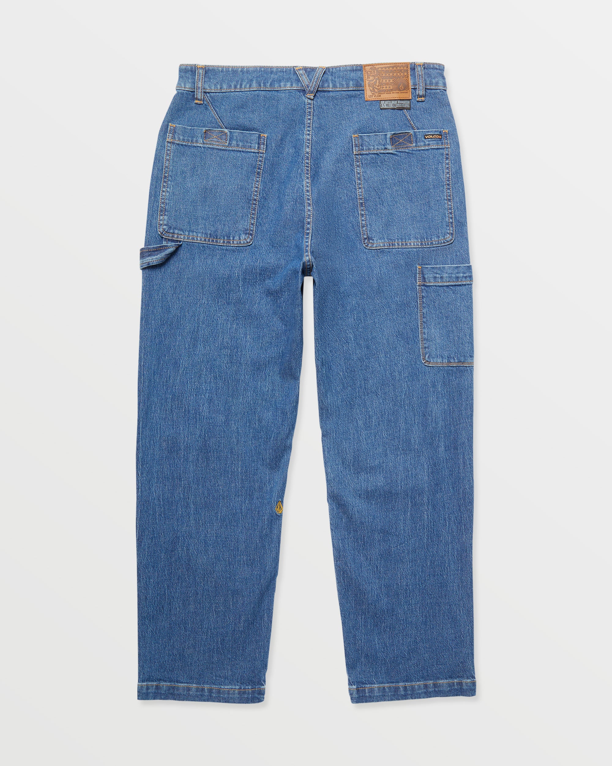 Built for the hustle. cut for the hang. The KRAFTSMAN II DENIM drops a loose tapered fit with a 17-inch leg opening. finished in a classic bold blue with slubby character. Made with recycled cotton and a hint of stretch. plus Volcom Water Aware processes. and our signature Volcom Brand Jeans details.