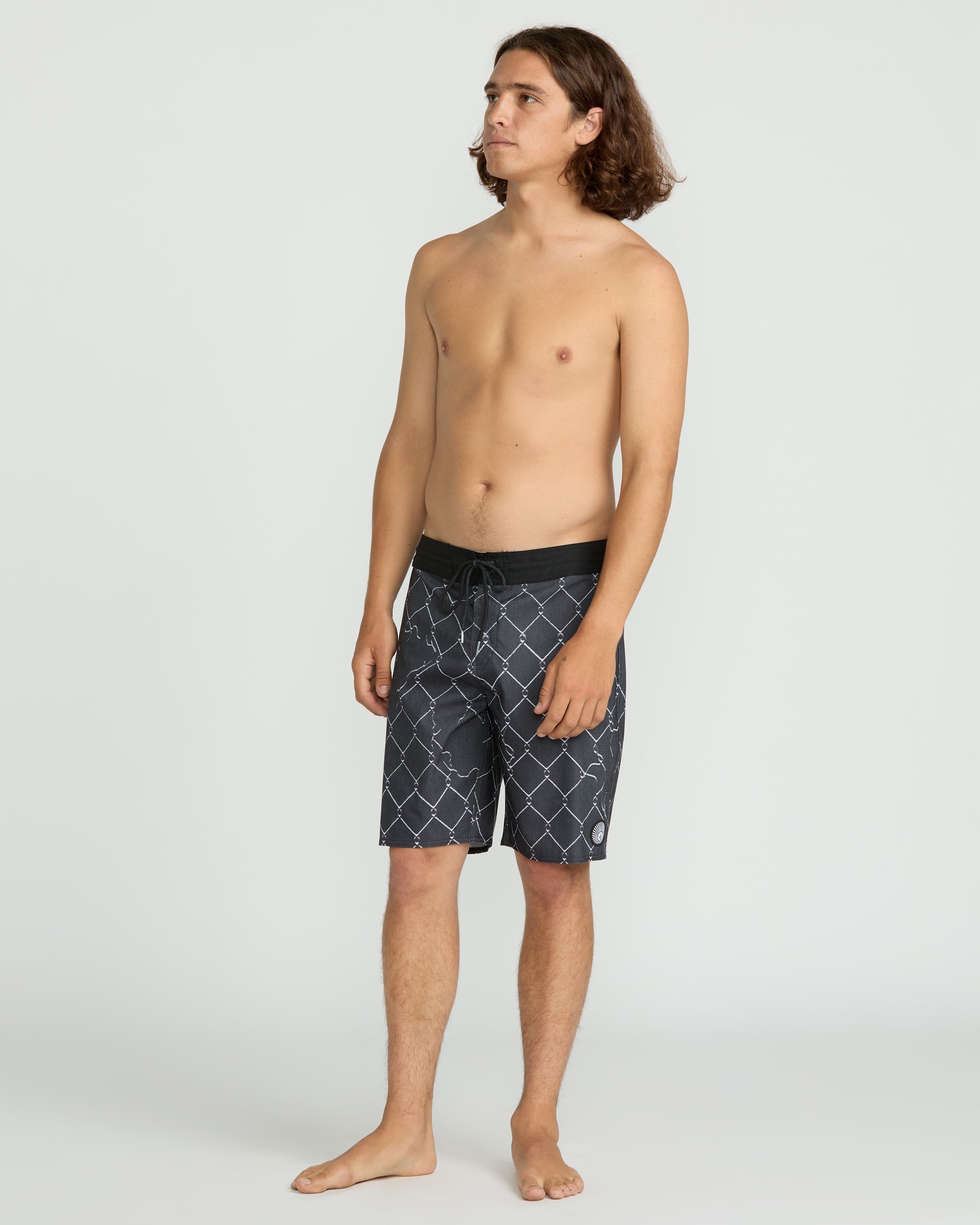 Comfort meets style in Volcom’s recycled polyester blend Misdormeaner board shorts. featuring a 19 outseam. back patch pocket. and signature Stoney Cinch fly.