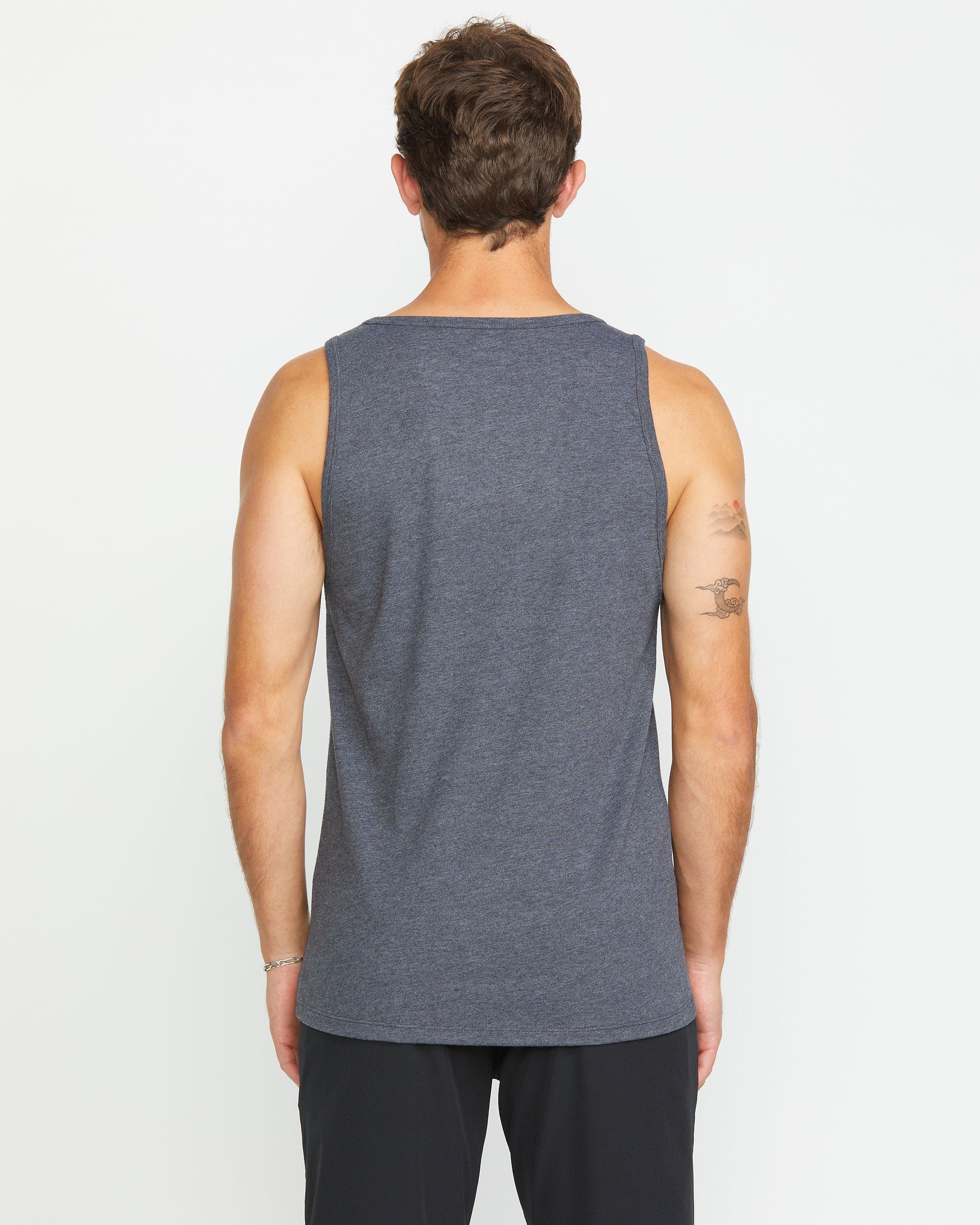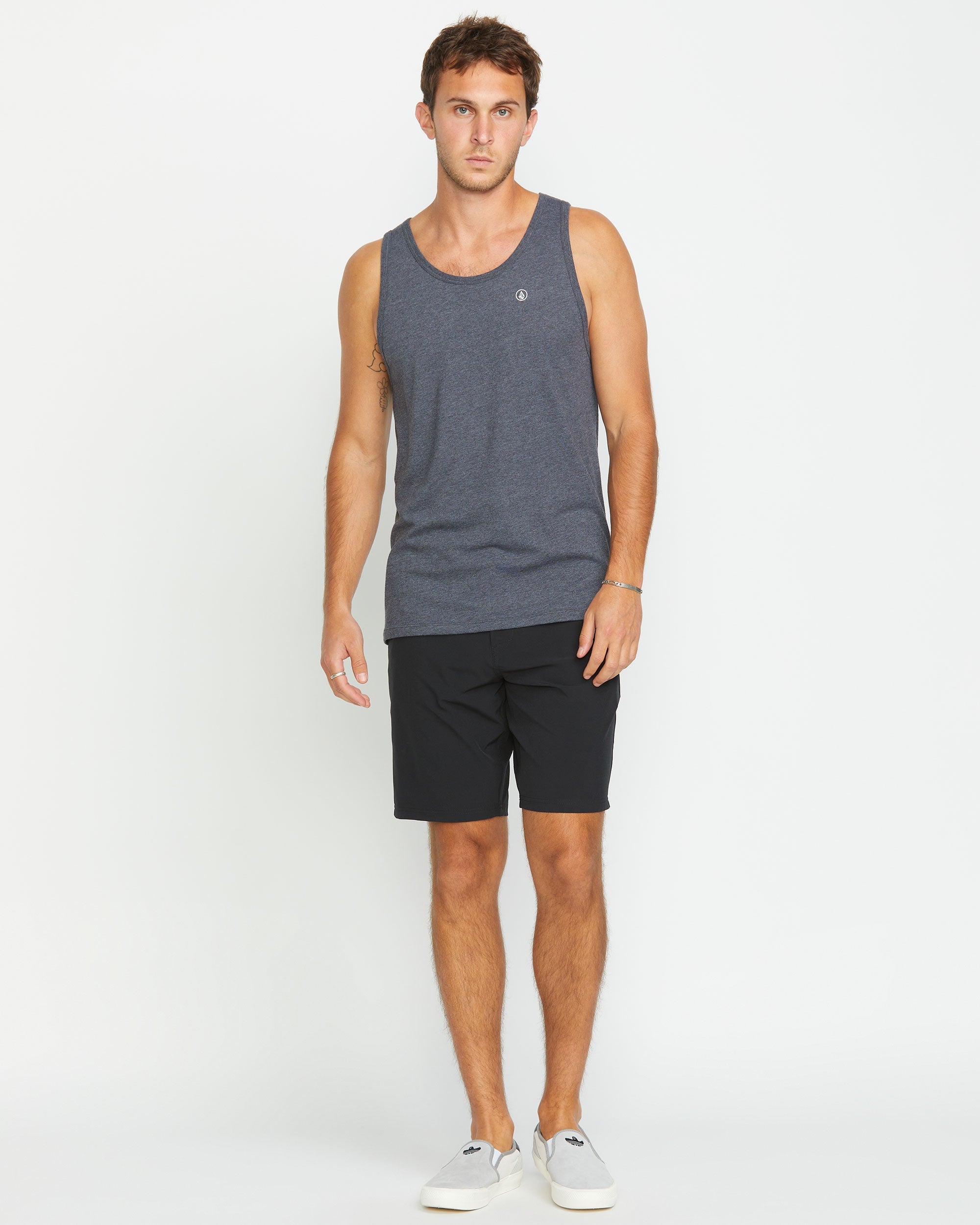 The Volcom Solid Heather Tank in Dark Black Heather brings modern fit and medium-weight comfort with a ring spun 50/50 feel that holds up. Soft-hand print hits right. neck and armhole binding keep shape. and the interior screen print keeps the neck smooth all day.