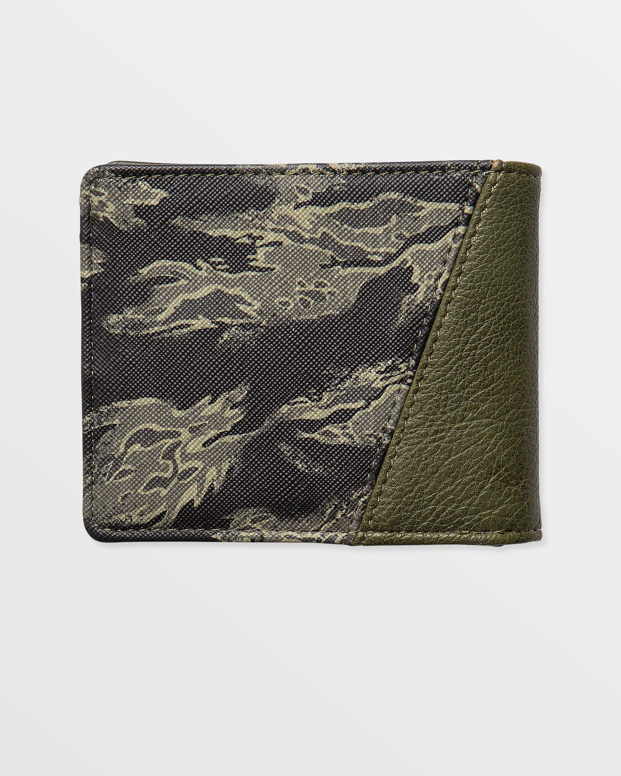 The Solidstone Bifold in CAMO brings a clean 100% PU build. a metal logo badge. internal card slots. and a paper currency compartment. finished with an internal debossed Stone logo. Keeps cash and cards where they belong. no drama.