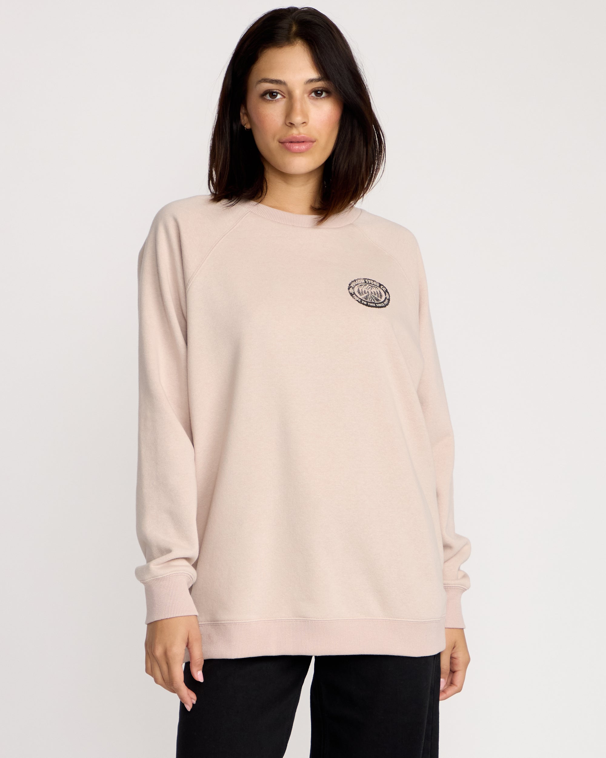 Stone Magic? More like everyday sorcery. This boyfriend crew in KHAKIEST packs ultra-soft brushed-back fleece at a just-right 260GSM. with raglan sleeves built to move. Screenprint hits at chest and back keep the energy up. while printed neck taping keeps it clean. Cozy. no-fuss. ready for whatever you’re chasing.