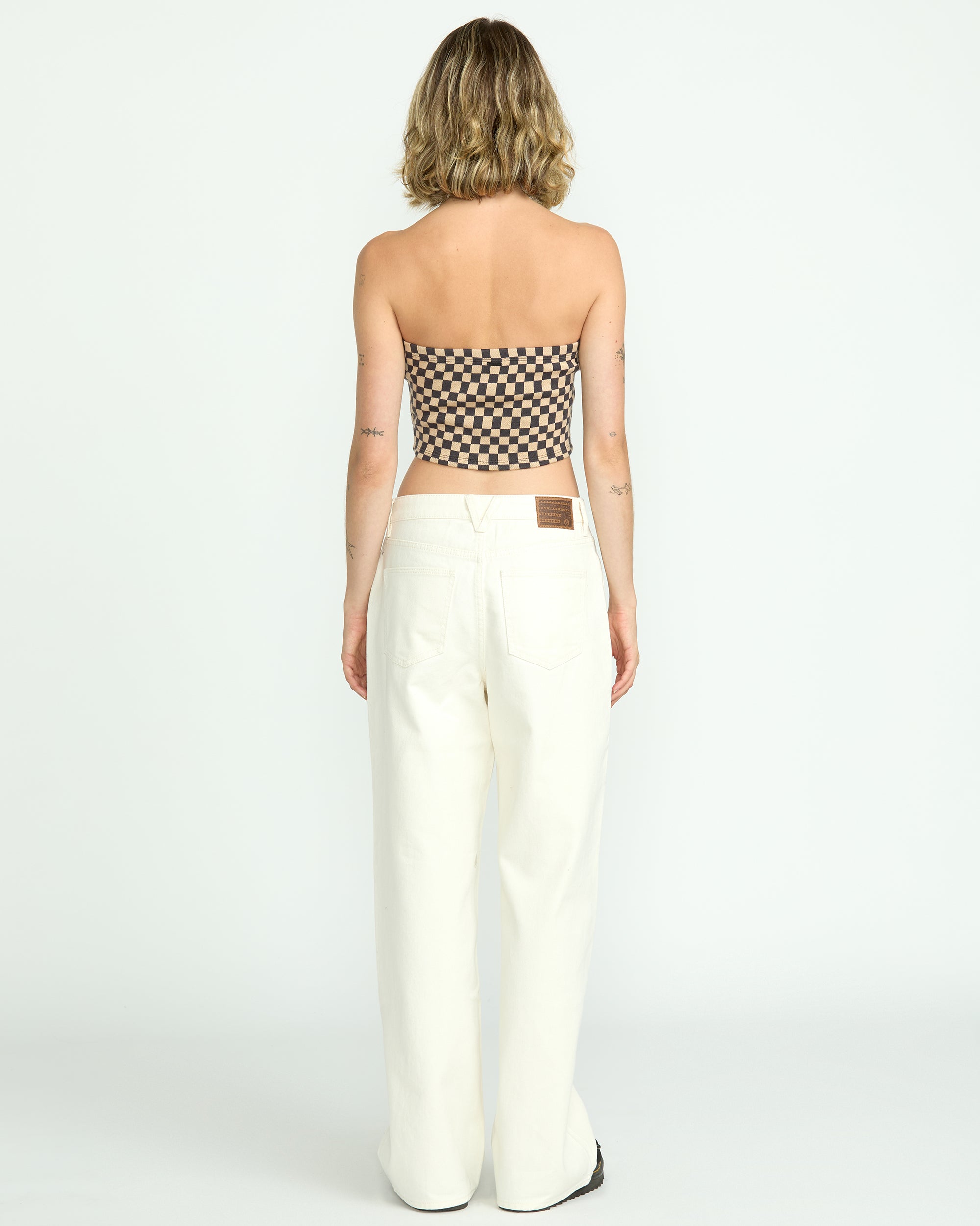 Effortlessly cool 100% cotton denim boyfriend jeans with flattering high rise. zipper fly. 31 inseam. and Volcom’s signature branding. Casually relaxed yet totally modern.