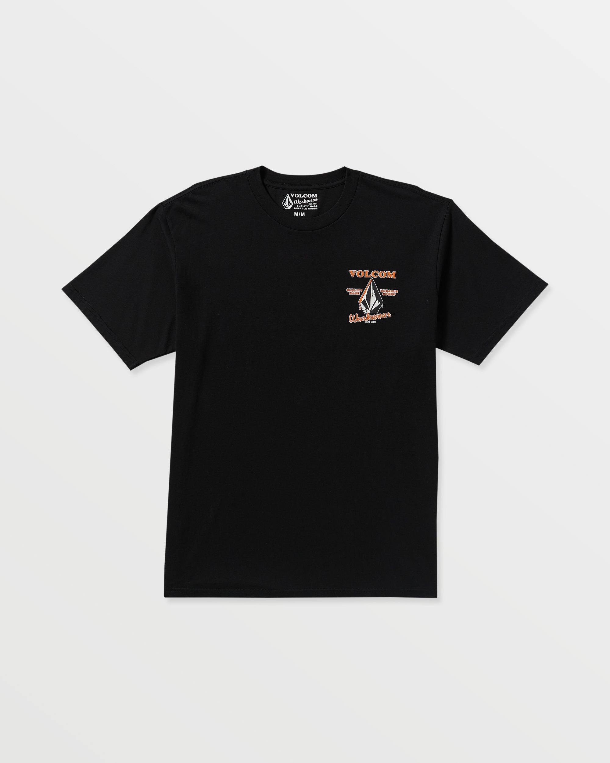 This one clocks overtime. From Volcom Workwear. the Enamel SST is cut in a classic fit and built from medium-weight. 100% ring-spun cotton with organic content. The soft-hand screen print sits clean on black. and the taped crew neck plus interior printed label keep it comfortable all day.