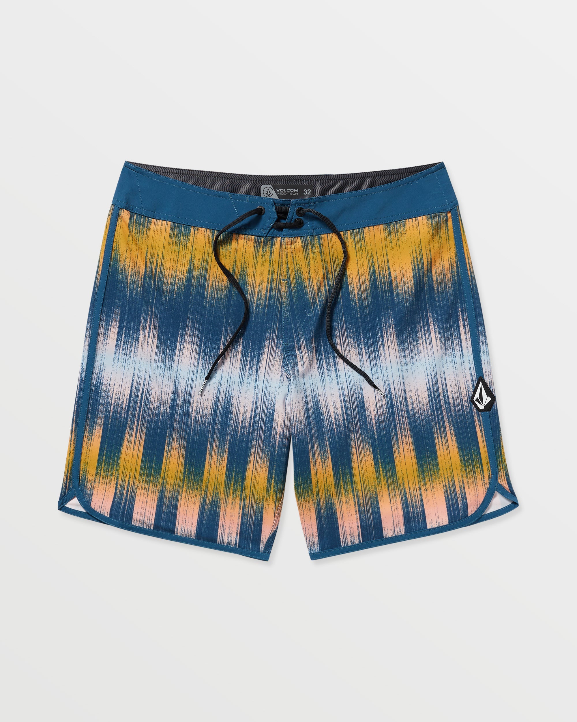 Polyester-elastane blend trunks with 19 outseam-perfect for surfing. swimming or beach lounging. Quick-drying. 4-way-stretch fabric with cinch fly stays put while back pocket stashes essentials. Signature Volcom style.