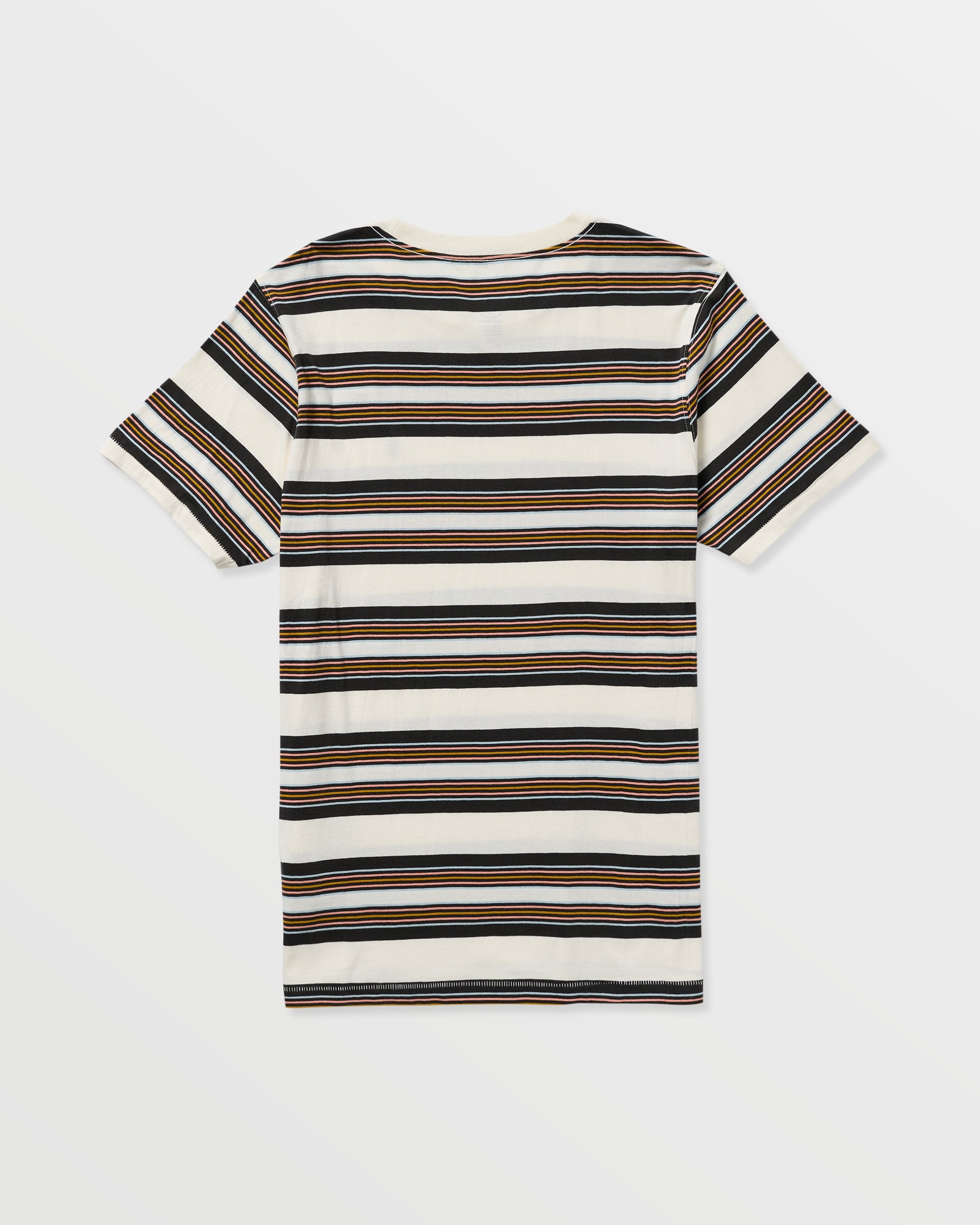 Stay comfortable in this 100% cotton yarn dyed stripe tee. with modern cut. chest logo embroidery. bias neck tape. and laid-back vibes.