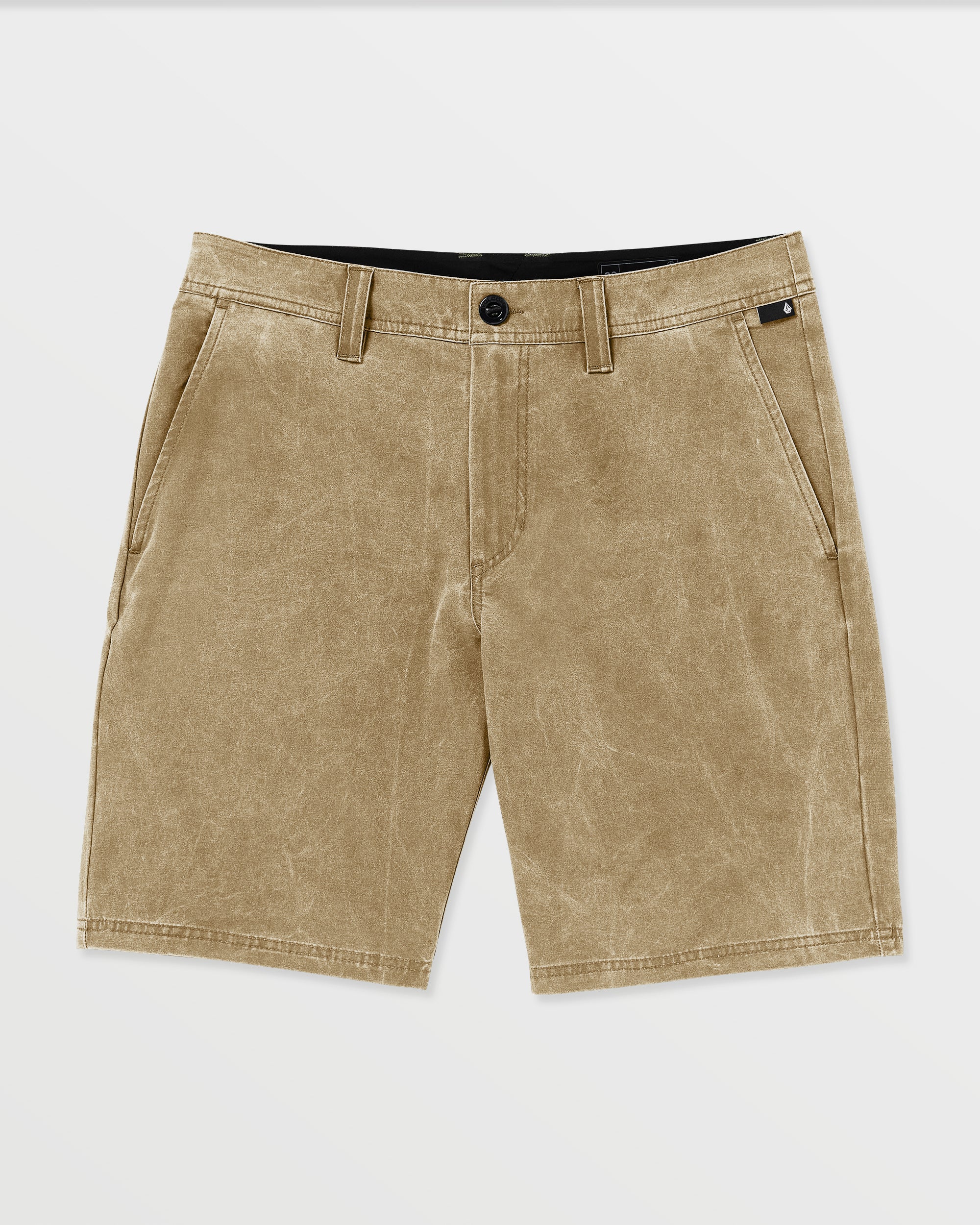 Laid-back meets modern in these hybrid shorts. a polyester-cotton-elastane blend with a relaxed fit and knee length. Faded wash with classic denim-style back pockets and a recycled plastic button closure.