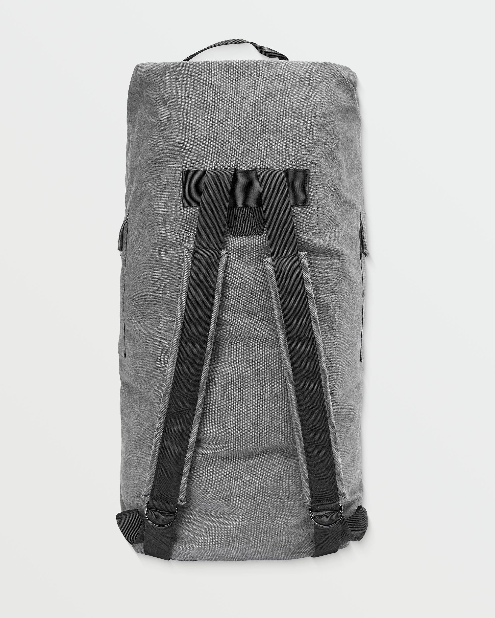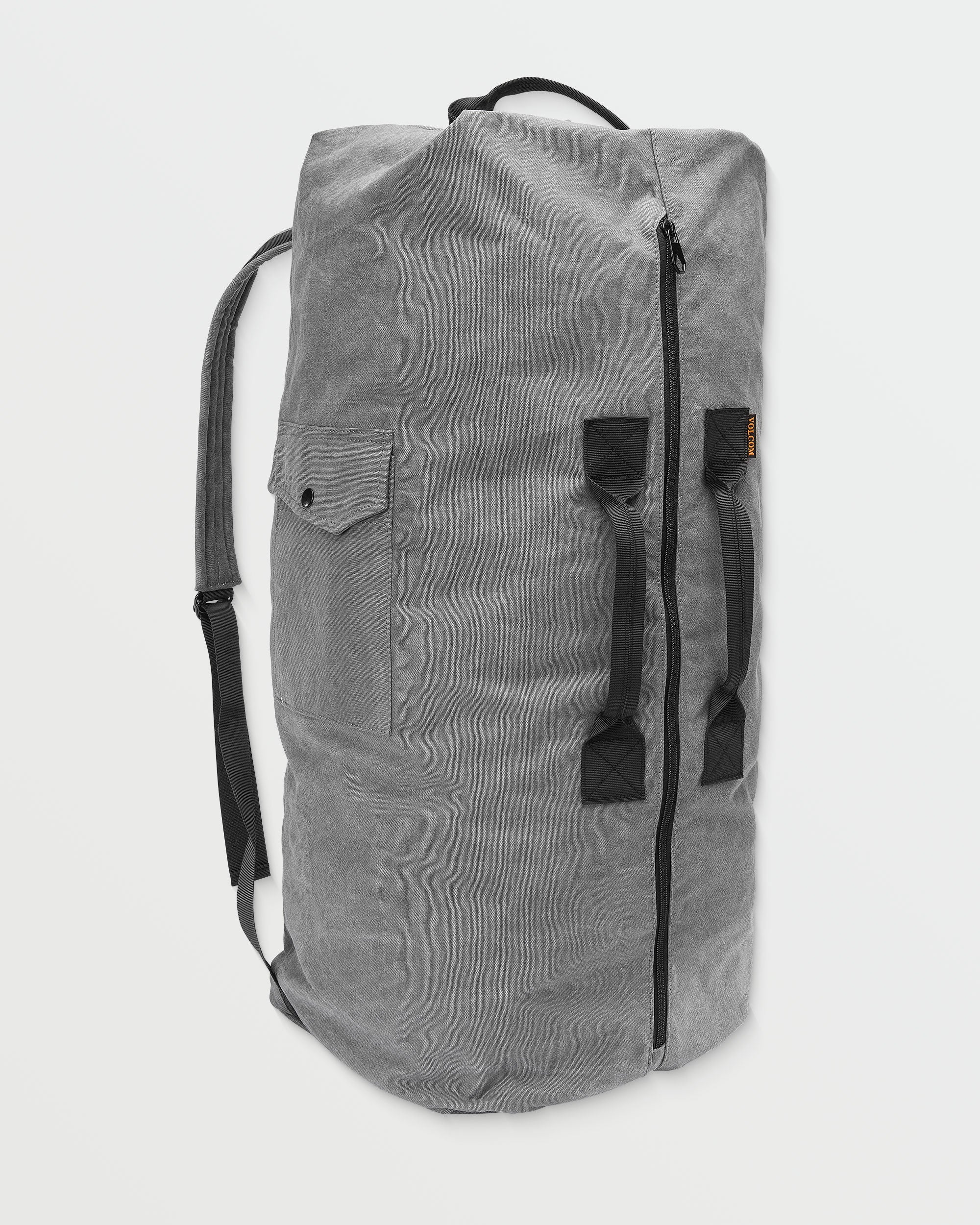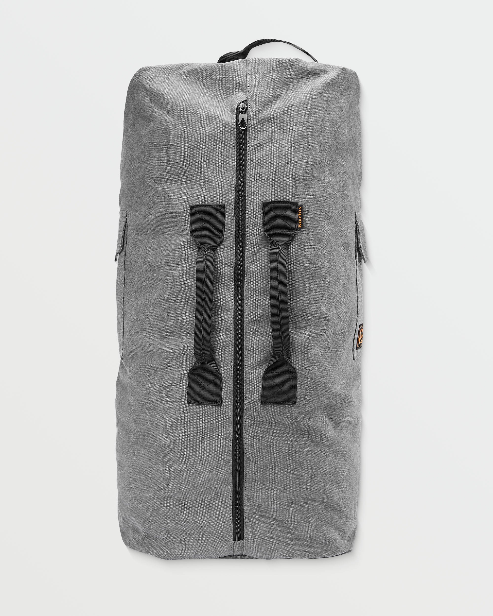 The Ruckstone Duffle hauls 84 liters in tough 100% cotton canvas. built in our Workwear DNA and finished in gray. Top-load main with secondary zip gives fast access. plus a side snap pocket for quick stash. Padded backpack straps and pinched webbing handles keep the carry easy.