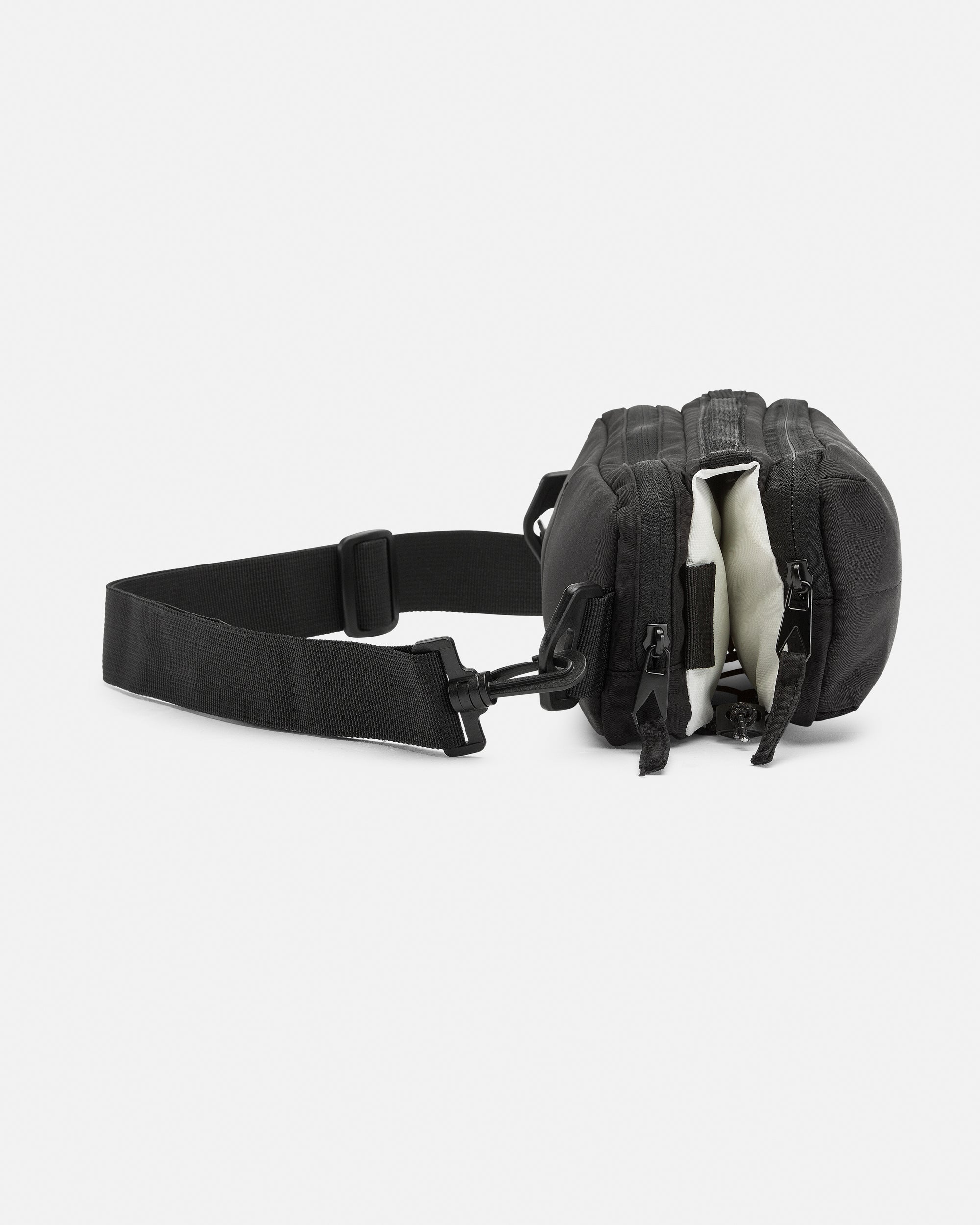 This black hip pack keeps the essentials locked and loaded. Two zip pockets and interior zip/slip stashes stay tidy. while a bungee water bottle holder rides between the zip pockets. Cinch the adjustable waist strap with our branded release clip or grab the webbing handle and roll.