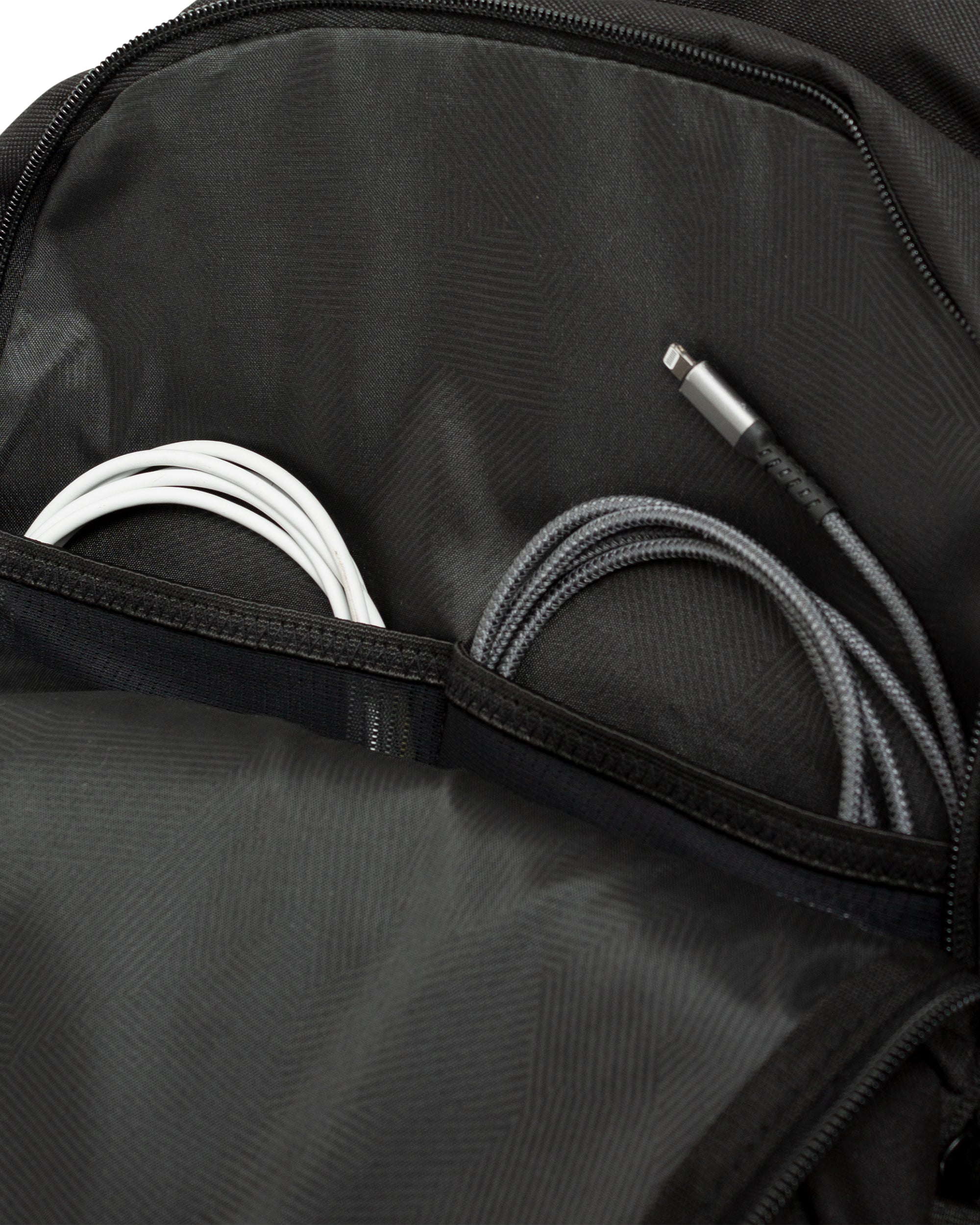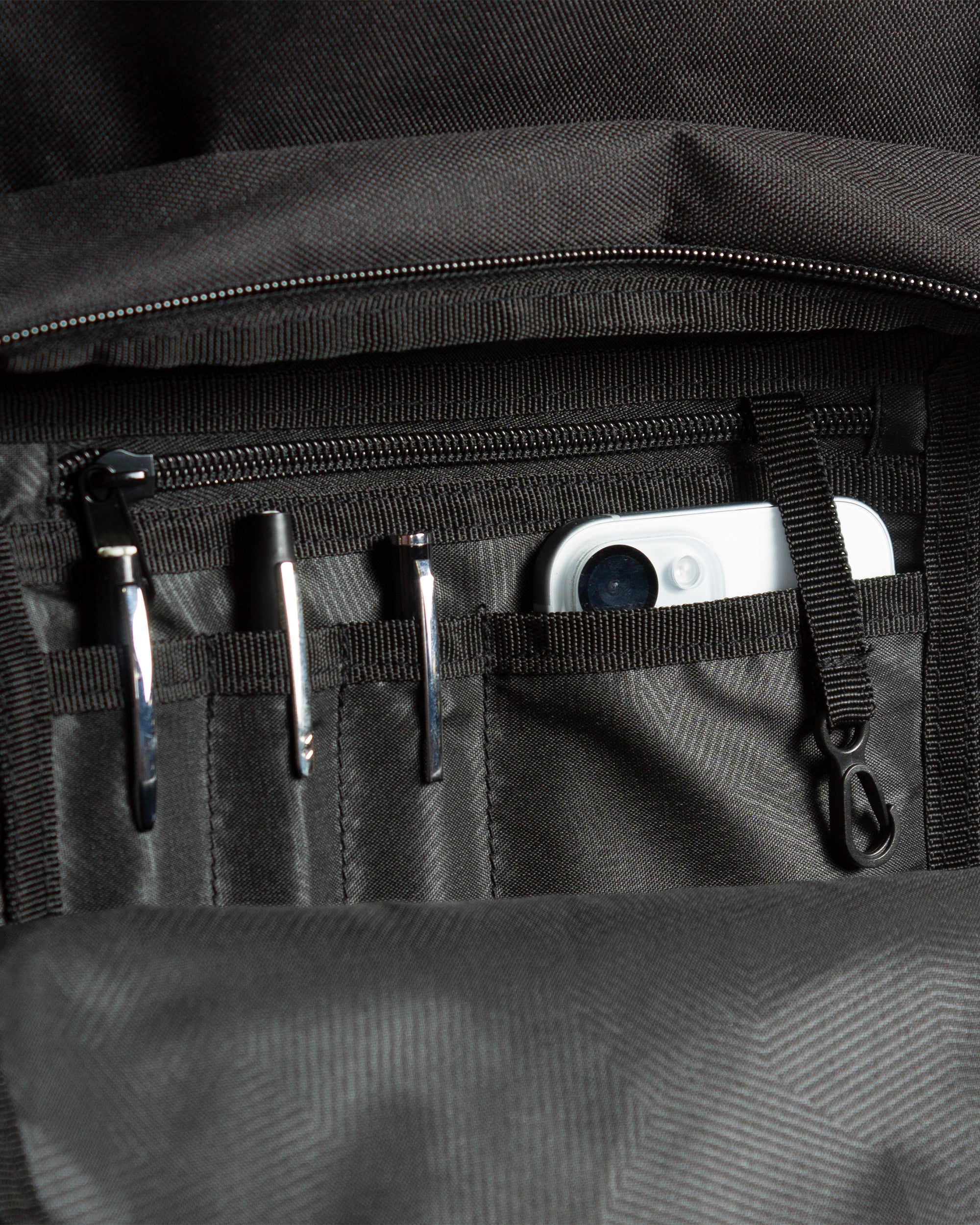 The Upperclass Backpack shows up ready. with dual compartments. a padded laptop sleeve. and a front zip organizer with key clip to keep your day tight. Elastic compression side pockets. mesh-lined ergonomic straps. and Stone logo back-panel quilting ride in a durable 100% polyester. black 22.25L build that can actually handle it.