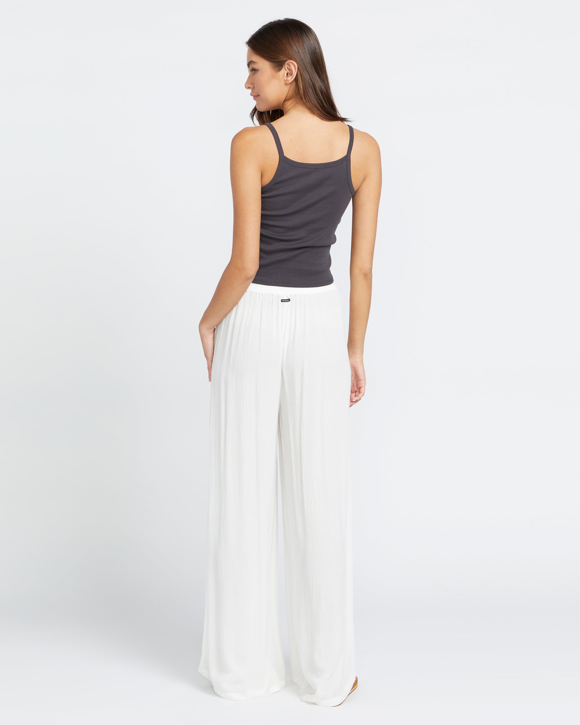 This viscose crinkle gauze pull-on keeps it breezy with relaxed wide legs. handy pockets. and side slits. Finished with a signature Volcom metal badge for laid-back beach style.